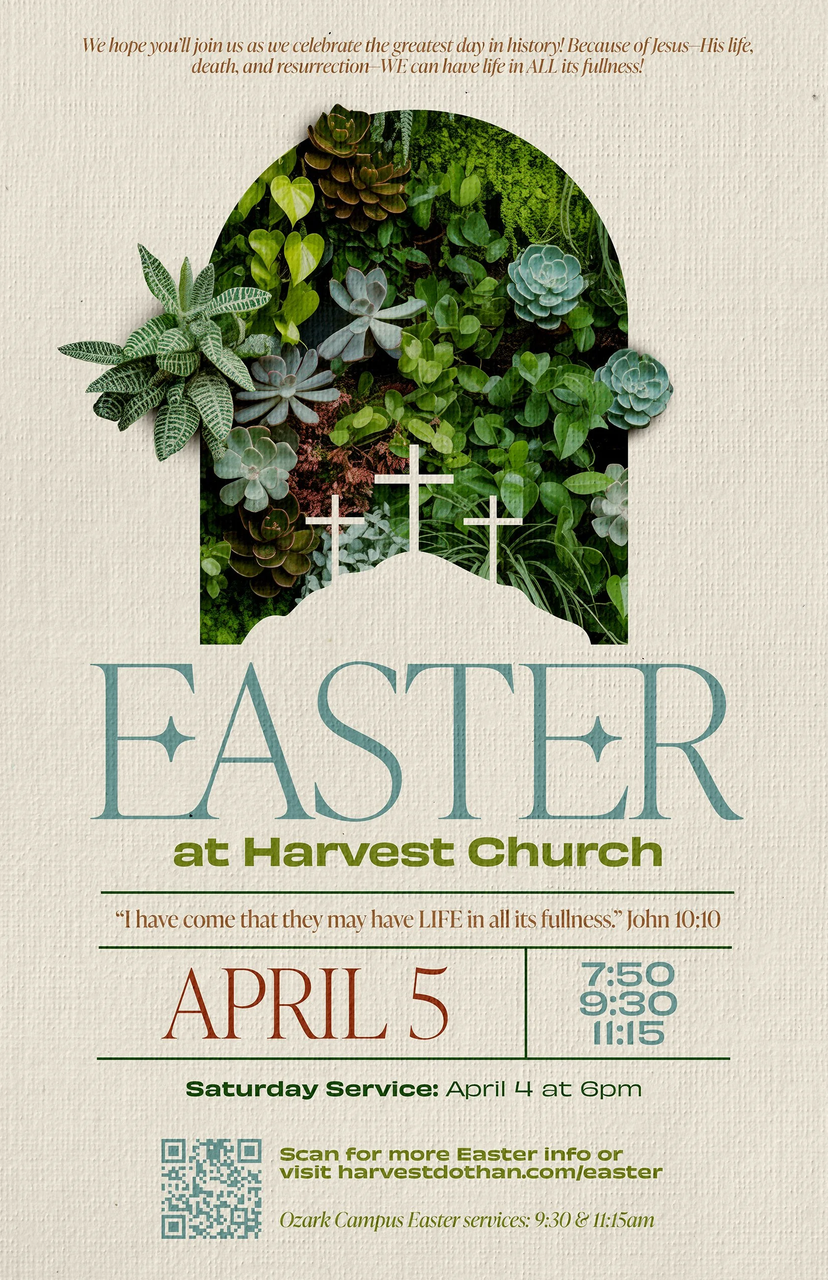 We are looking forward to seeing you! When you arrive you will be greeted by one of our friendly volunteers. Inside the Worship Center, ushers will be available to help you find a seat. We have a Guest Info desk in the lobby if you have any questions about Harvest! Nursery and kids classes are located in Building B (to the left of the main Worship Center). At our Ozark campus, our kids area is inside the main doors and to the right. If Easter is your first time joining us, be sure to stop by one of the First Time Guest tents or tables. We have a special gift for you to thank you for worshiping with us!